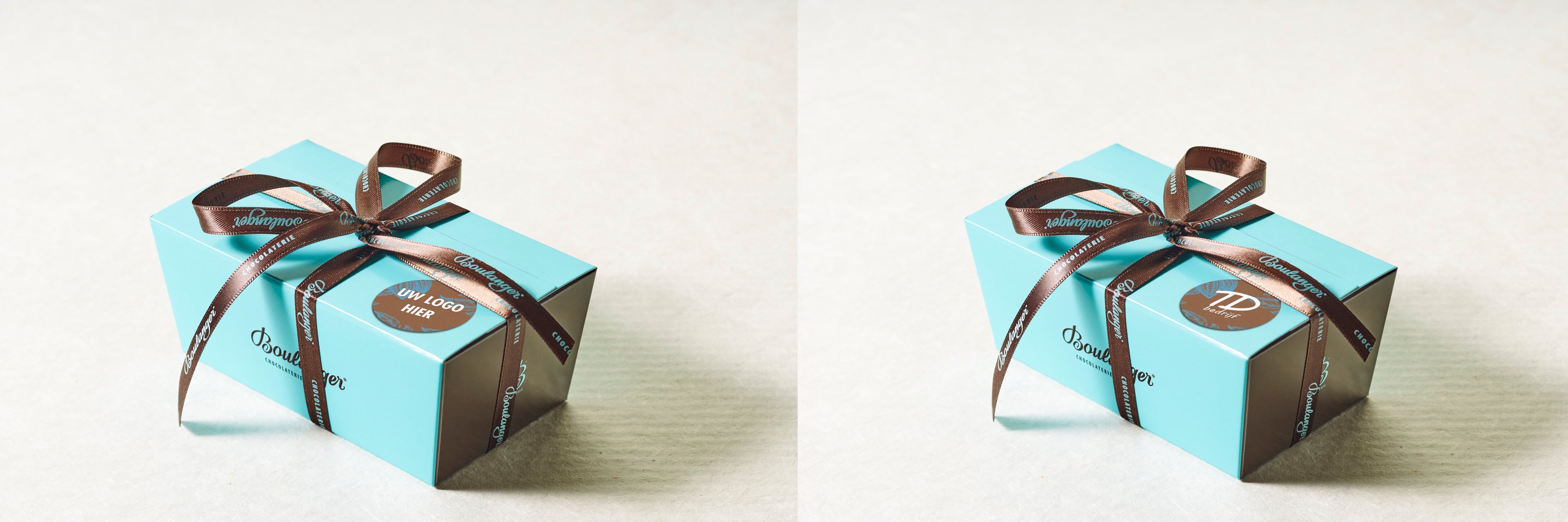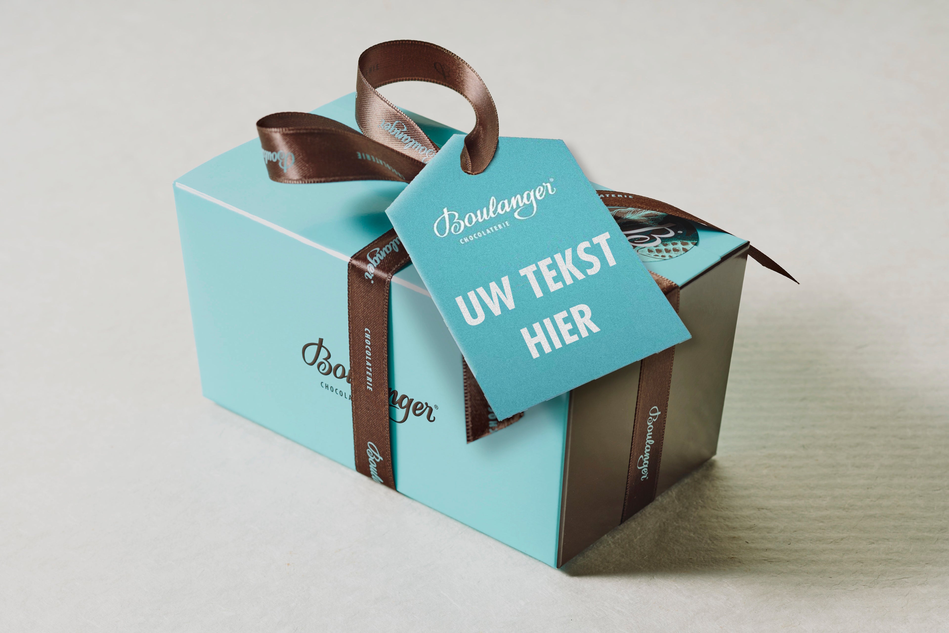 van een sticker of kaartje met uw logo. Of een sleeve om een doosje bonbons heen, geheel in de huisstijl van uw bedrijf.