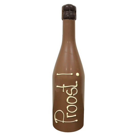 Tijd om te vieren? Deze grote chocolade champagnefles is de zoete manier om samen te toosten – helemaal van chocolade, van top tot bodem.