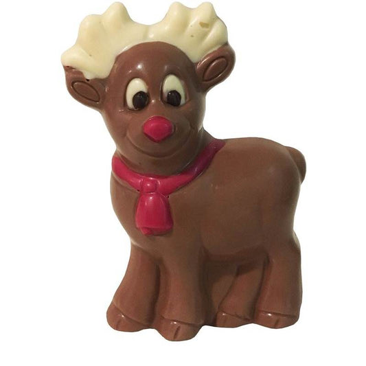 Vrolijk rendier met rode neus en sjaal. Een speels figuur voor de feestdagen.