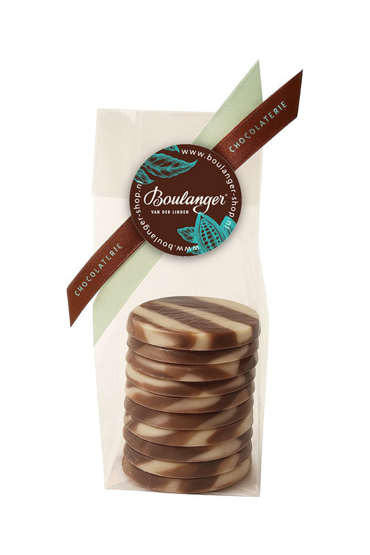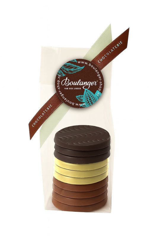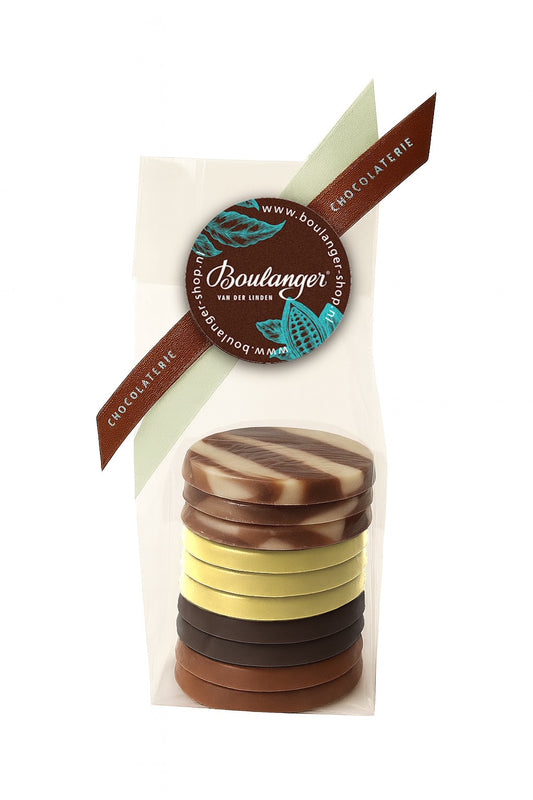 Heerlijke ronde schijven van chocolade. In melk, puur, wit en gemarmerd.